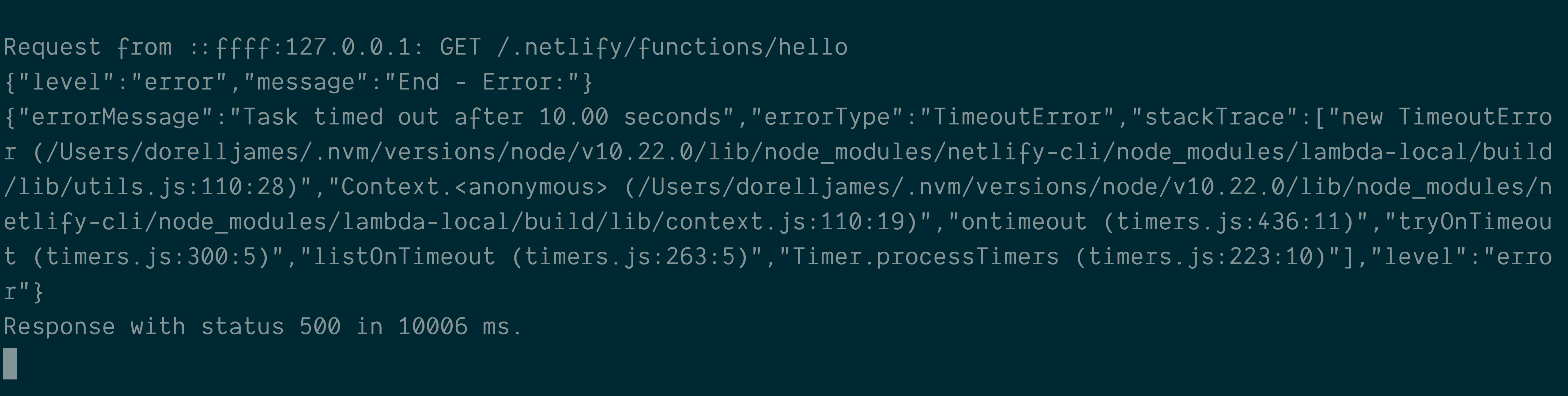 hello.jsIt will deploy as a synchronous function that returns its response to the client (eg: browser) after the function completes. Because the client is waiting on a response, the function must finish within 10 seconds, or it will fail as it timeouts.